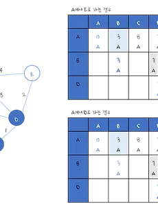 Dijkstra algorithm(다익스트라 알고리즘) 열심히 그렸는데, 맞겠지. stack에 값을 넣어놓고 pop해서 꺼내면 된다. *A에서 D로 가는 경우, A에서 B를 거쳐 D로 가게되면 8이 됨으로, 7A를 저장해 준다. class Graph: def __init__(self): self.node = set() self.edges = {} self.distances = {} def add_node(self, value): self.nodes.add(value) def add_edge(self, from_node, to_node, distance): self._add_edge(from_node, to_node, distance) self._add_edge(to_node, from_node, dist..