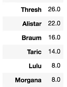 큰일이다 큰일 심심해서 하는 거에 시간 투자를 많이 하고 있다. 오늘은 밴픽에 대하여 살펴볼건데 2018년 Srping NA LCS경기 (39건)에 관하여만 살펴보았다. 탑같은 경우 총 10명(Impact, Solo, Darshan, Licorice, zig, hauntzer, Flame, Huni, Lourlo, Ssumday) 원딜의 경우 총 12명(Deftly, Doublelift, Sneanky, Piglet, Altec, Zven, Wildturtle, Rikara, Arrow, Cody sum, Apollo, Stixxay) 정글도 총 12명 (Contractx, Dardoch, MikeYeung, Reignover, Dandy, Xmithie, AnDa, Santorin, Svenskeren..
